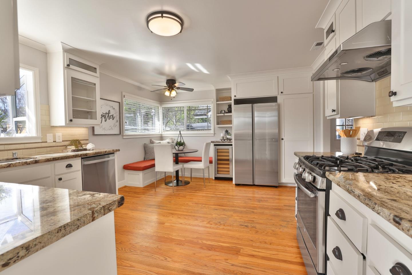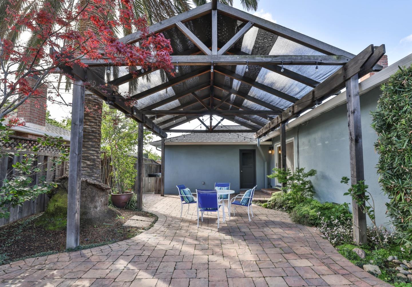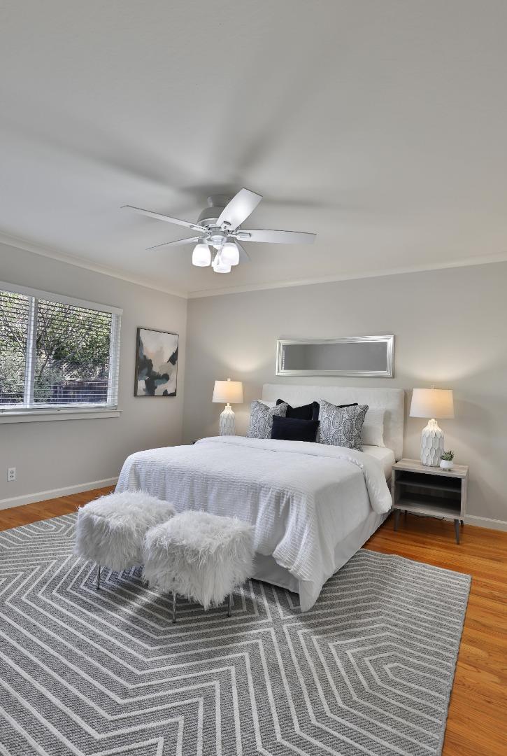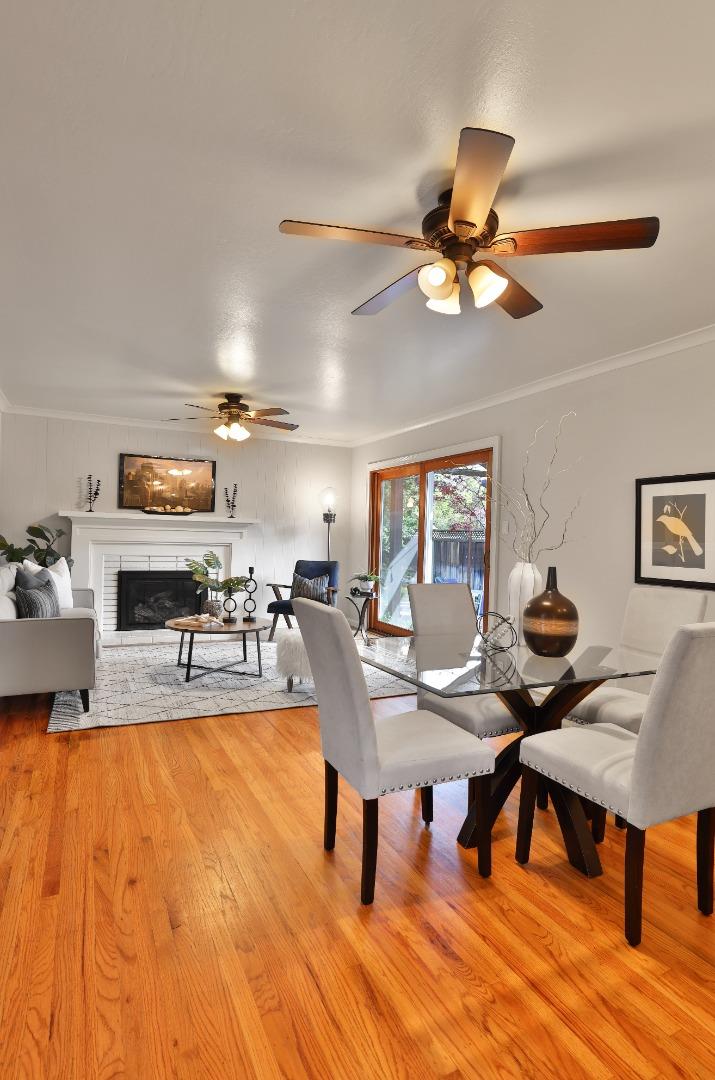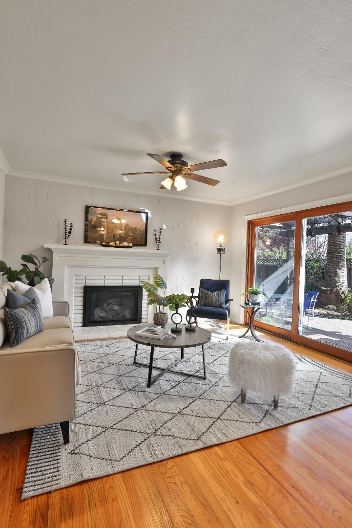 Charming Cambrian home offers the perfect blend of comfort, elegance, and location set within the award-winning Union School District (Lietz Elementary, Dartmouth Middle, Branham High School). Step inside to a freshly painted interior and stunning hardwood floors that flow throughout. The inviting great room centers around a premium Mendota gas fireplace with a custom-built mantel, while an 8' Hurd glass slider seamlessly connects indoor and outdoor living. Out back, enjoy your private oasis: a beautifully landscaped yard with a lush lawn, vibrant gardens, and a soaring 30' Canary Island palm tree. Entertain or unwind beneath the 26' custom-built redwood arbor covering a high-end Cal Stone paver patio. The chef's kitchen features custom white cabinetry, granite countertops, and a classic subway tile backsplash. The spacious primary suite includes a beautifully remodeled bath with floor-to-ceiling Sonoma Tile, marble accents, a walk-in shower, a Toto toilet, and a custom marble vanity. Two additional bedrooms, an updated hall bath with granite vanity and Toto fixtures. Upgrades throughout, including an upgraded electrical panel, newer plumbing, and a 50-year Presidential roof make this home truly move-in ready. Ideally located with easy access to shopping, dining, and freeways.