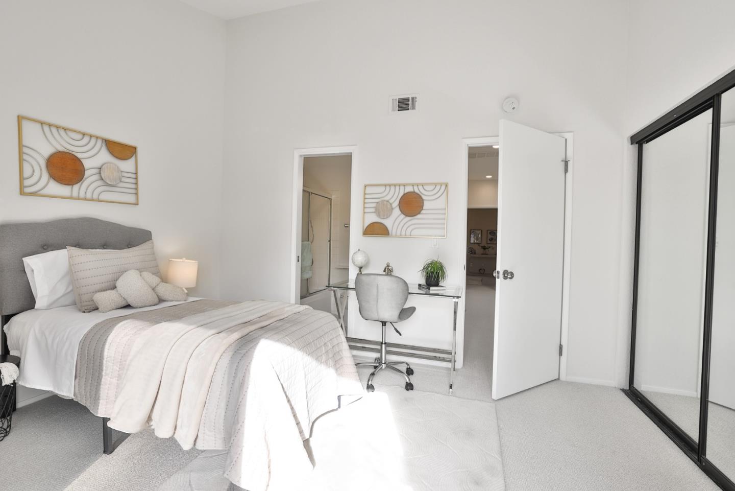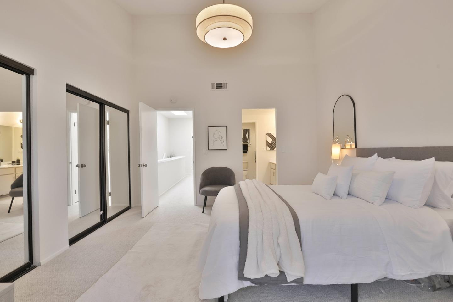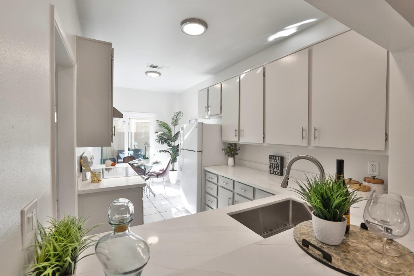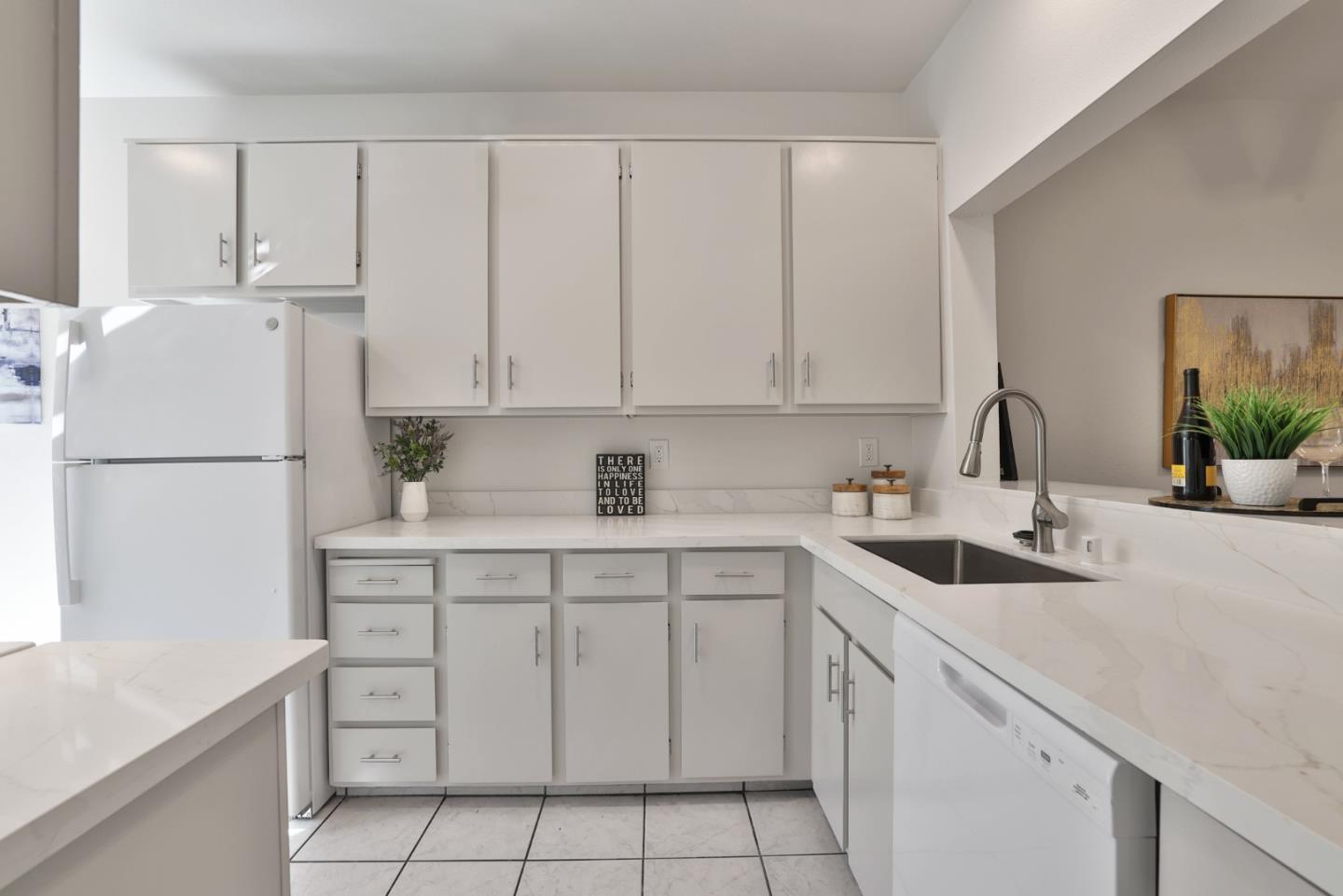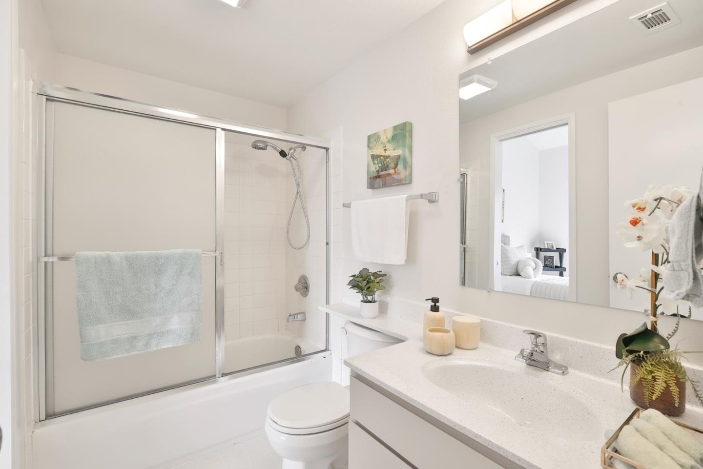 Welcome to this beautifully refreshed condo, a perfect blend of modern upgrades and comfortable living. Inside, the home has been tastefully updated with fresh interior paint, new carpets & upgraded lighting, featuring recessed lights & contemporary fixtures. The kitchen boasts sleek quartz countertops, freshly painted cabinets, a new sink, faucet and dishwasher, making it a great space for cooking & entertaining. Natural light floods the living spaces, thanks to 4 sliding doors and 2 skylights. Enjoy cozy evenings by the fireplace, or step out onto 1 of the 2 private patio areas. Upstairs, both bedrooms have their own balconies. Highlights include a 1-car garage, an upstairs laundry nook, & recently installed AC. The primary bedroom features dual mirrored closets, offering ample storage, while the en-suite bathroom has double sinks and a shower over the tub. The second bedroom, with its vaulted ceiling, also includes a bathroom. Nestled in a quiet community, you'll enjoy access to a recreation room and poolideal for relaxation and entertainment. Conveniently located near Highways 680 and 880, this home is a commuter's dream. Dont miss out on this fantastic opportunity!