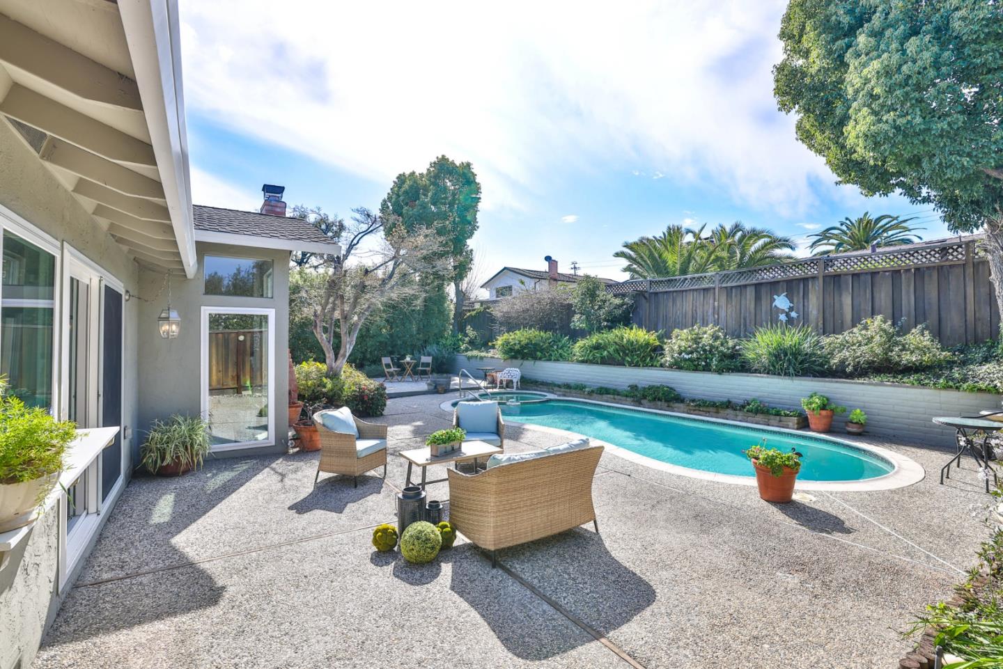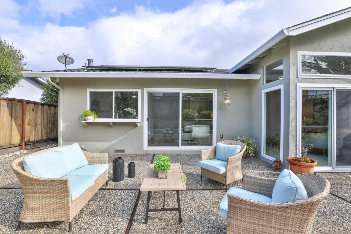 Welcome to this sprawling, single-story Almaden Valley sanctuary, nestled on a quiet cul-de-sac. Spanning 2,024sf, this home sits graciously on an expansive 8,541 sf lot. The exterior showcases a refreshing pool & spa, ideal for relaxation and entertaining. The freshly painted interior and exterior exude a modern and inviting atmosphere. The kitchen boasts freshly painted cabinets, granite countertops, and new appliances. The indoor laundry adds practicality, while the kitchen nook dining and formal dining area provide versatile spaces for meals and gatherings. The residence features a well-designed floor plan, encompassing both a family and separate living room. The roof, a mere 7 years new, ensures worry-free living, while owned solar panels contribute to energy efficiency.The 4 bedrooms and updated bathrooms offer a tranquil retreat. The property is part of the top-rated Union School District, with esteemed schools including Guadalupe Elementary, Dartmouth Middle, and a Free Zone High (Branham or Leigh).Conveniently located, residents can walk to TJ Martin Park, local coffee shops, eateries, and grocery stores. Enjoy the proximity to shopping centers, parks, and easy access to commute routes, making daily life a breeze.Don't miss the opportunity to make this your forever home!