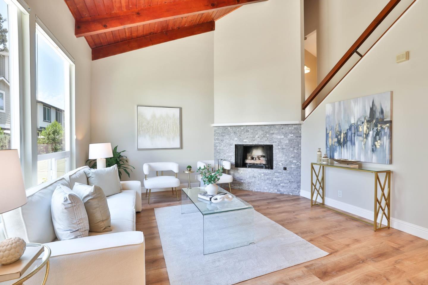 Welcome to 216 W Rincon Ave, where modern upgrades meet prime location. The open living space is warm & inviting with luxury vinyl plank flooring, a stone-accented fireplace & custom Hunter Douglas shades. The kitchen featuring shaker cabinets, quartz countertops, and premium GE Profile appliances, including a dual-fuel range with built-in air fryer. A full pantry, instant hot and cold water dispenser, and layered lighting make this space as functional as it is stylish. Upstairs, the primary suite feels like a retreat with a cedar-lined walk-in closet, private balcony, and spa-inspired bath complete with double vanity and tiled walk-in shower. The guest suite is equally inviting with a deep soaking tub, modern finishes, and cedar-lined closet. Additional highlights include a reimagined laundry and powder room with designer tile and barn door, energy-efficient systems, finished under-stair storage, and a private garage with extra parking. Tucked within an intimate 6-unit community, this home offers rare privacy while being just walking distance from Downtown Campbell, the Pruneyard, weekly farmers markets, local parks, and top-rated schools. With thoughtful upgrades and an unbeatable location, it delivers the perfect balance of style & convenience!