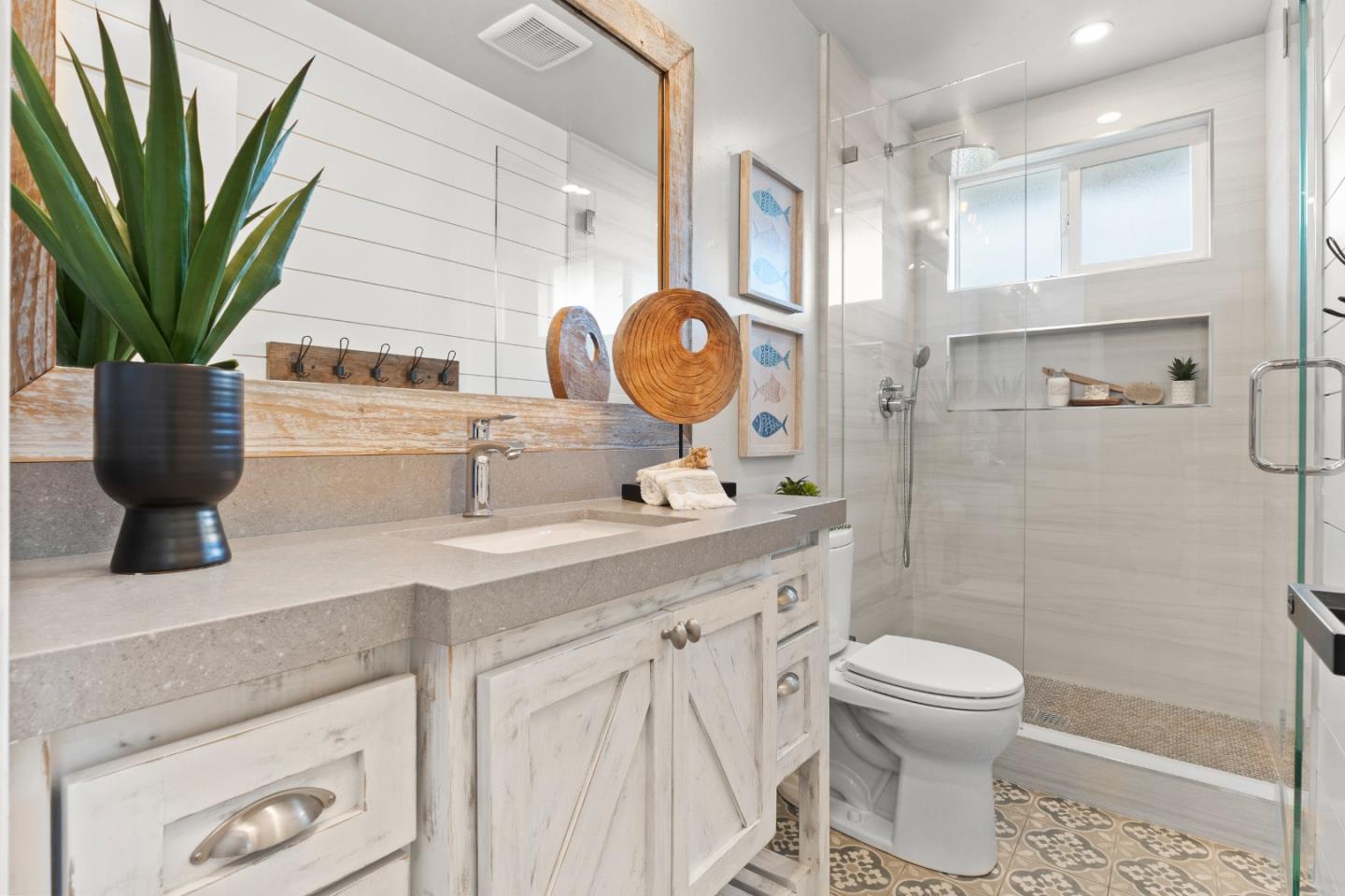 Welcome to the highly desirable Cambrian neighborhood! This beautifully updated 3-bedroom, 2-bathroom home offers a move-in-ready experience with modern finishes throughout. The gourmet kitchen features maple cabinetry, granite countertops, GE Monogram SS appliances & Sub-Zero refrigerator. Enjoy the built-in breakfast nook looking out onto the backyard, recessed lighting & stunning hardwood floors throughout, with tile in the kitchen and bathrooms. A bright living room with a skylight, shiplap wall & cozy fireplace. Updated bathrooms offer new shower walls, fresh paint, custom cabinetry, quartz countertops, Toto toilets, tile flooring & shiplap. Bedrooms are freshly painted with mirrored closet doors & clothes organizers. Landscaped yard, offering ample space for a peaceful oasis, a gunite pool ideal for warm weather, and a built-in BBQ. Additional upgrades include owned solar, EV car charger, dual fuel HVAC with energy efficient heating/cooling system w/heat pump (replaced in 12/2024), and tankless water heater! Facing East is perfect for enjoying afternoon backyard activities. Minutes to grocery stores, shopping, restaurants & with easy freeway access, this home is also within the San Jose Unified School District. Don't miss the opportunity to make this stunning home yours!