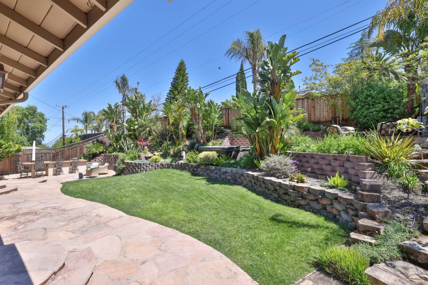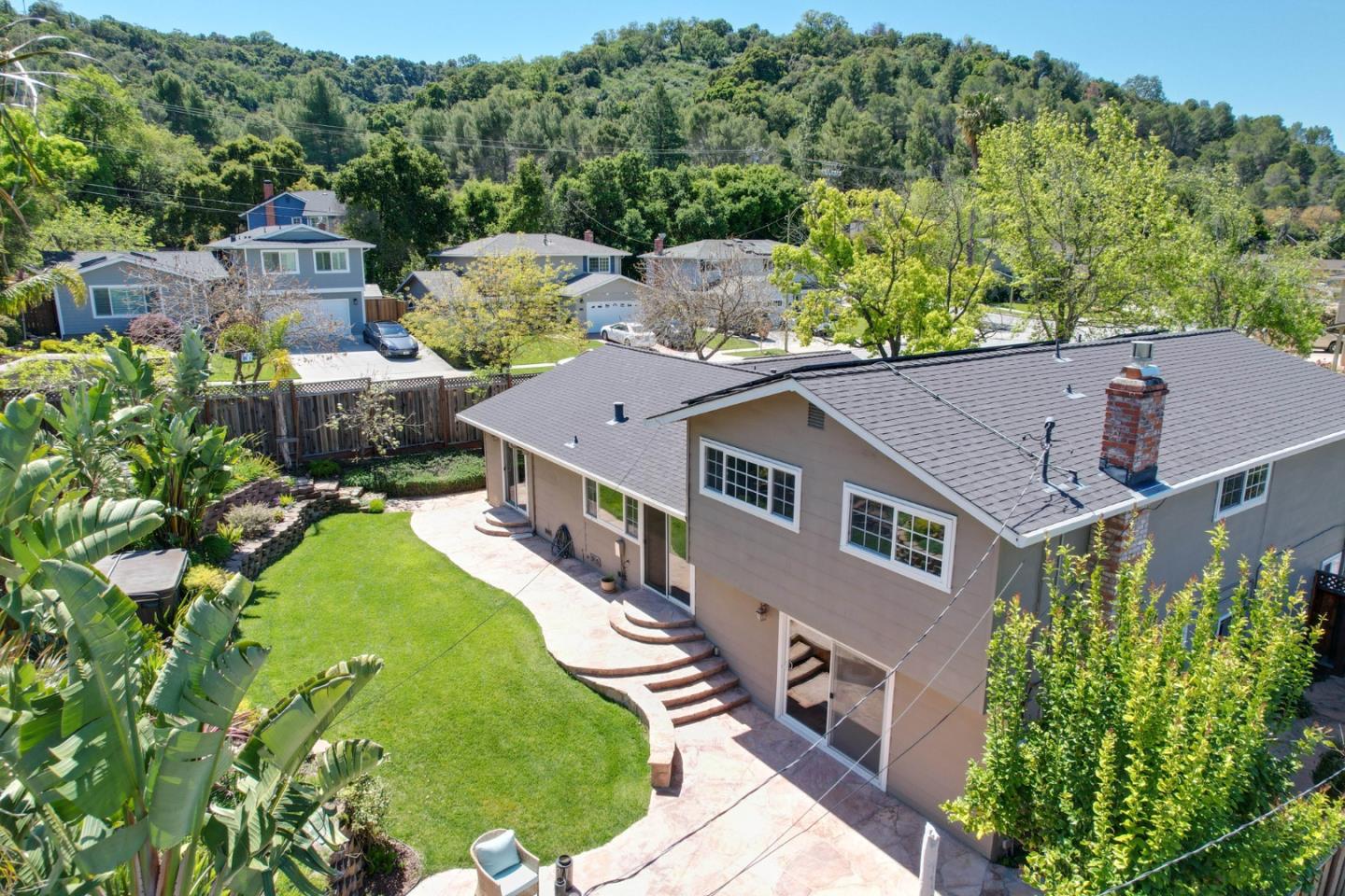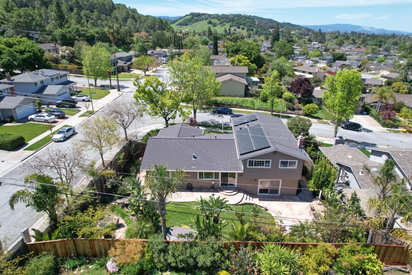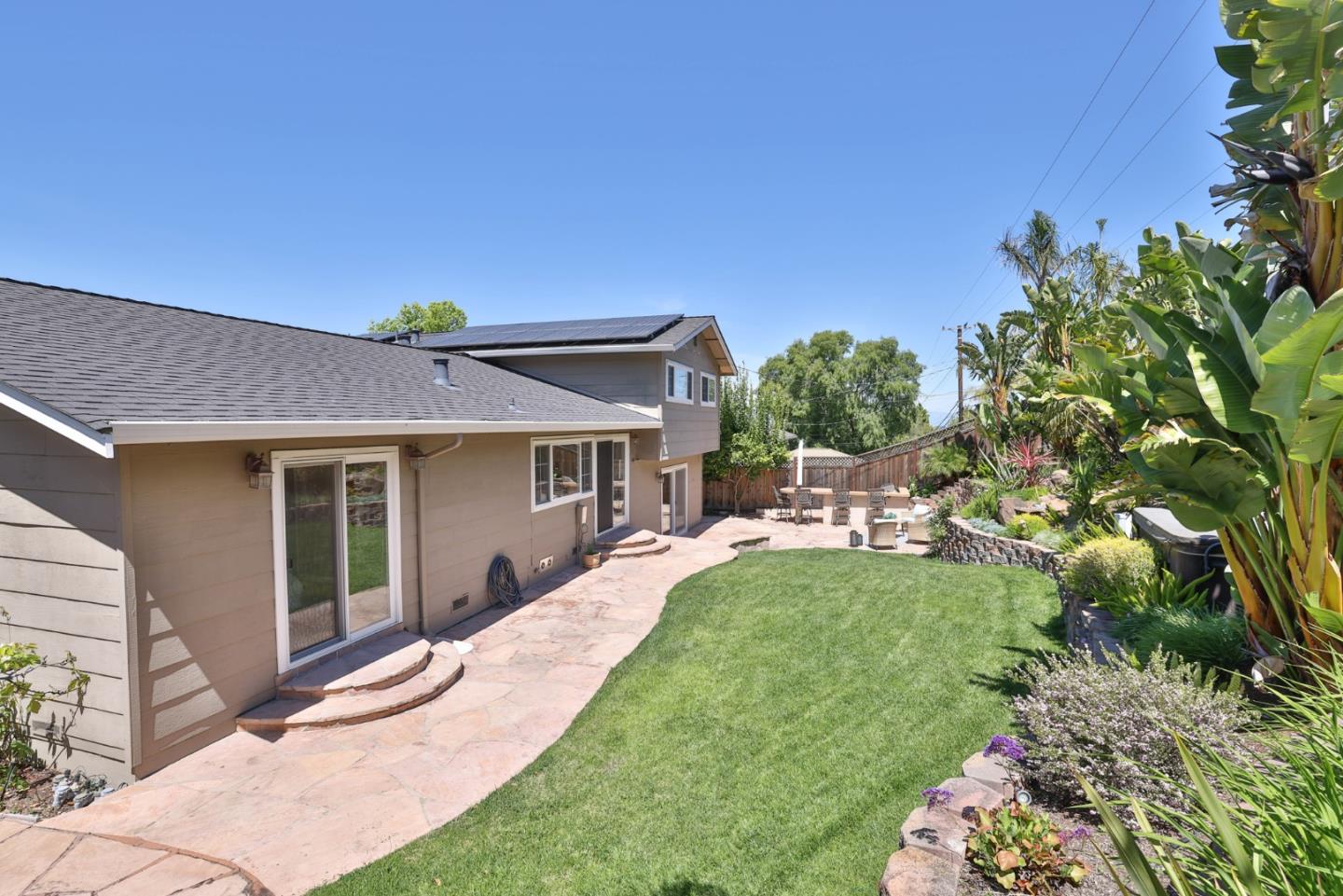 Meticulously maintained & luxuriously upgraded home offers an expansive layout in the highly sought-after Montevideo Club neighborhood of Almaden Valley. Admire breathtaking mountain vistas enhancing the allure of the area. Inside, a custom 500 sqft De Mattei addition boasts a vaulted ceiling living room, custom built in office, a main level bedroom and full bath and laundry room. The separate family room with gas fireplace and wet bar is perfect for entertaining. The gourmet kitchen, with quartz countertops and newer stainless steel appliances, is a chef's dream. Enjoy formal dining or casual breakfasts in bright spaces. Five bedrooms (plus office), including a primary suite with jetted tub, ensure comfort and convenience. With upgrades like newer windows, dual HVAC, and owned solar panels, luxury living awaits. Leisure amenities include a large hot tub, a built-in barbecue with expansive countertops, a custom waterfall, and a cozy firepit area, all set against the stunning backdrop of mountain views. For just $954 yearly, indulge in Montevideo community living including pool, spa, clubhouse, and more. Exceptional schooling options at Guadalupe Elementary, Dartmouth Middle and free zone (Branham or Leigh High) await. Enjoy living with the tranquility of nature at your doorstep!