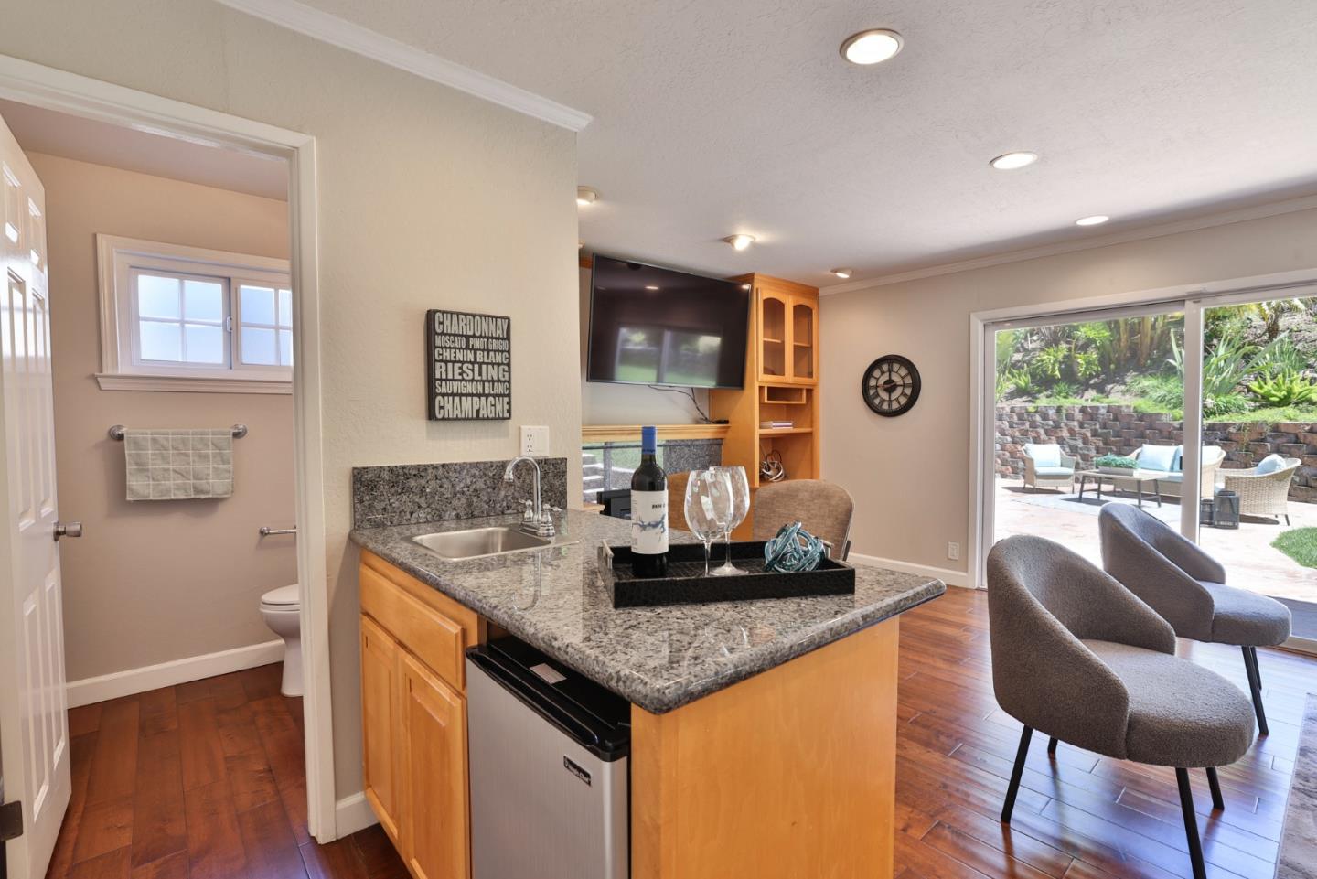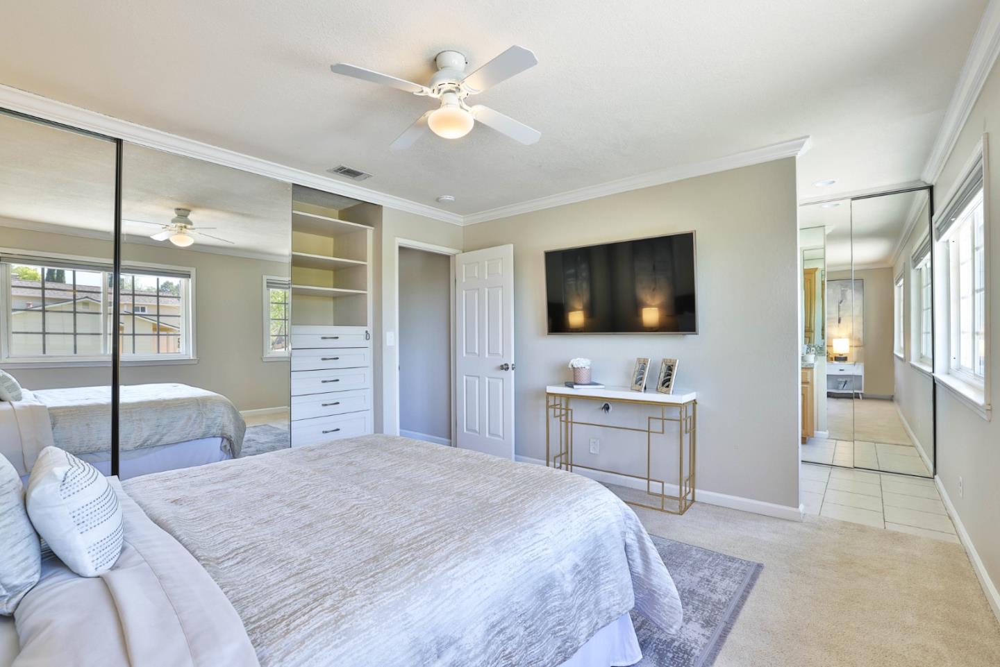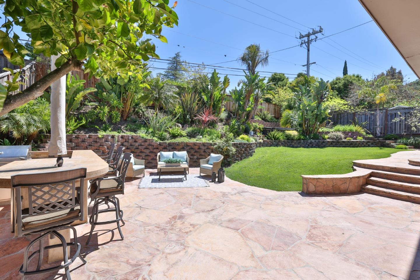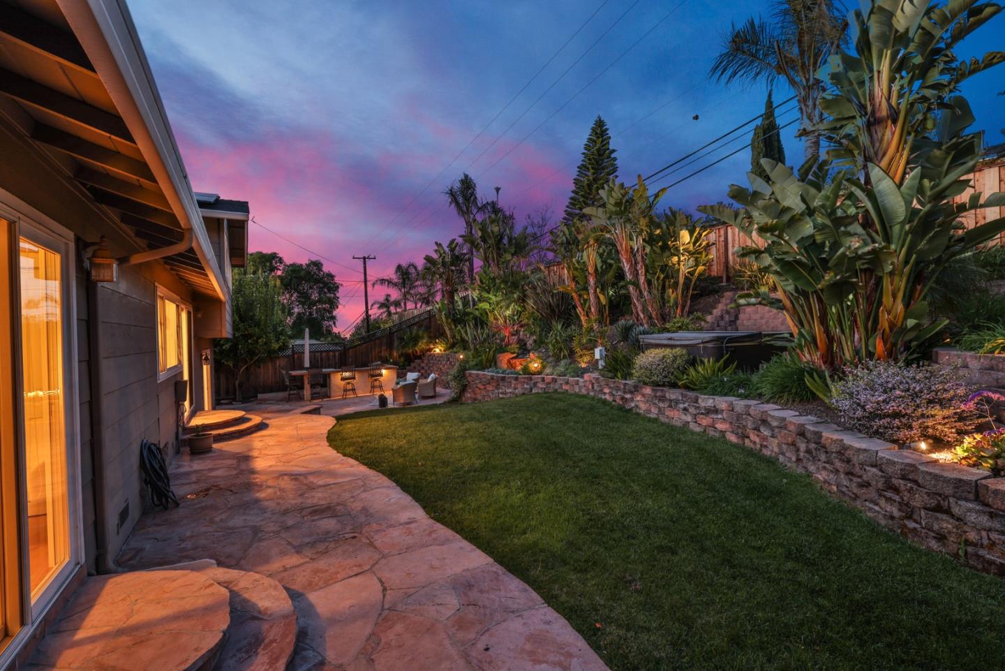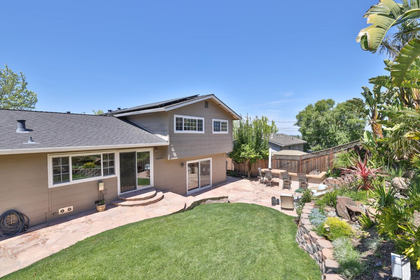 Meticulously maintained & luxuriously upgraded home offers an expansive layout in the highly sought-after Montevideo Club neighborhood of Almaden Valley. Admire breathtaking mountain vistas enhancing the allure of the area. Inside, a custom 500 sqft De Mattei addition boasts a vaulted ceiling living room, custom built in office, a main level bedroom and full bath and laundry room. The separate family room with gas fireplace and wet bar is perfect for entertaining. The gourmet kitchen, with quartz countertops and newer stainless steel appliances, is a chef's dream. Enjoy formal dining or casual breakfasts in bright spaces. Five bedrooms (plus office), including a primary suite with jetted tub, ensure comfort and convenience. With upgrades like newer windows, dual HVAC, and owned solar panels, luxury living awaits. Leisure amenities include a large hot tub, a built-in barbecue with expansive countertops, a custom waterfall, and a cozy firepit area, all set against the stunning backdrop of mountain views. For just $954 yearly, indulge in Montevideo community living including pool, spa, clubhouse, and more. Exceptional schooling options at Guadalupe Elementary, Dartmouth Middle and free zone (Branham or Leigh High) await. Enjoy living with the tranquility of nature at your doorstep!