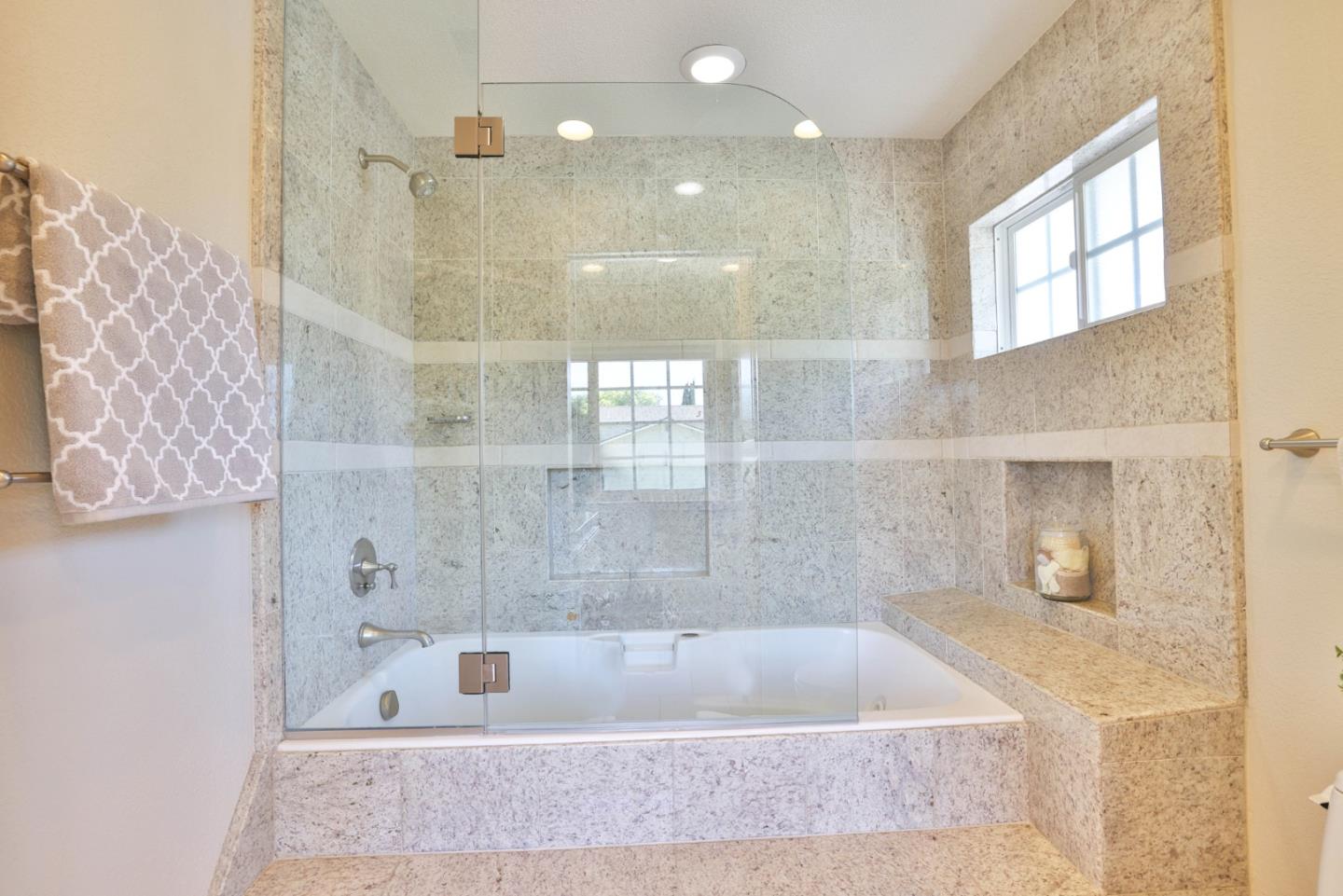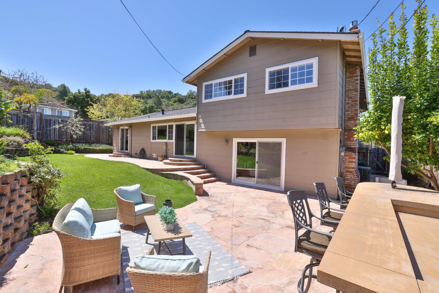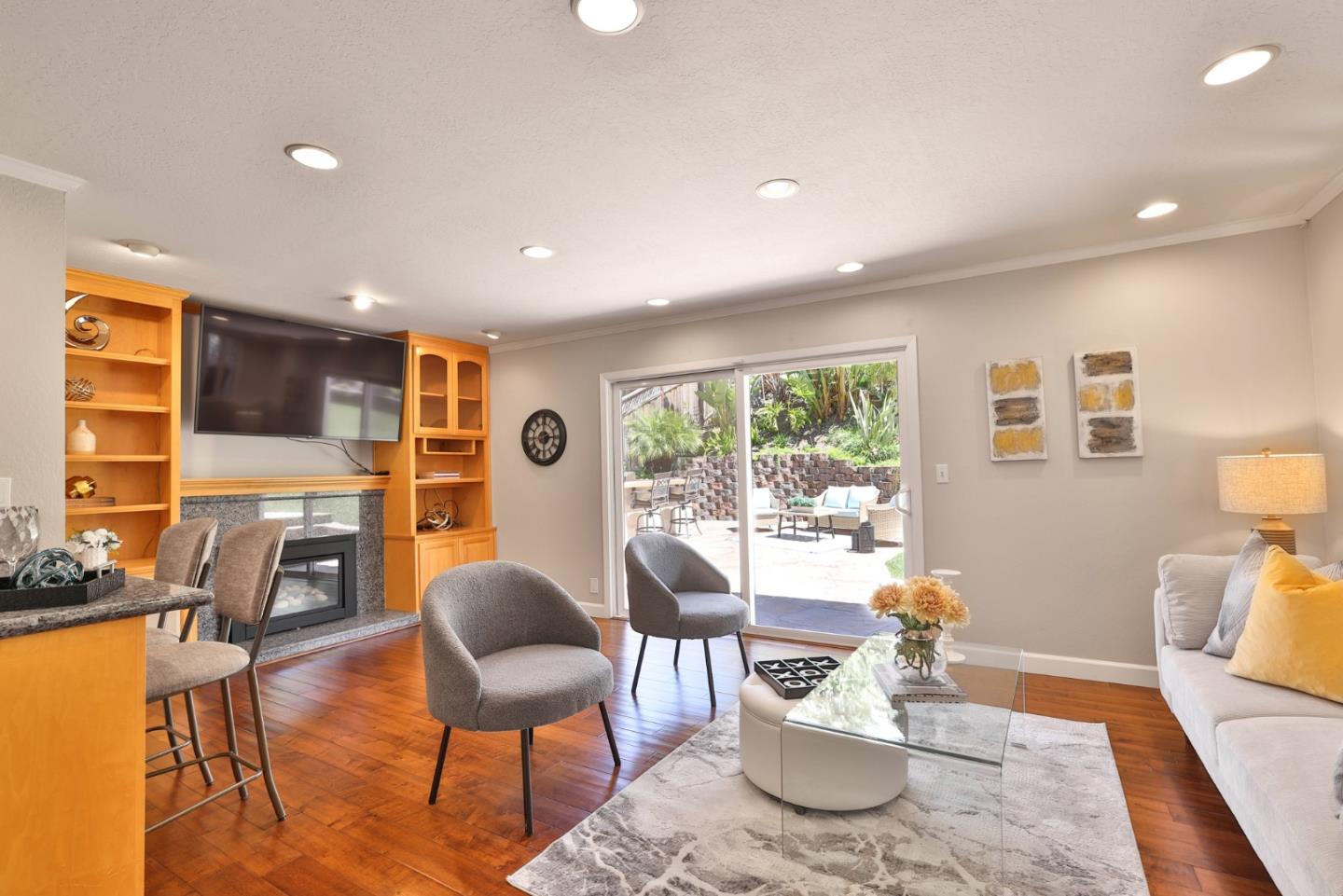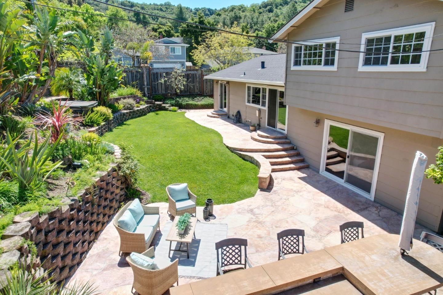 Meticulously maintained & luxuriously upgraded home offers an expansive layout in the highly sought-after Montevideo Club neighborhood of Almaden Valley. Admire breathtaking mountain vistas enhancing the allure of the area. Inside, a custom 500 sqft De Mattei addition boasts a vaulted ceiling living room, custom built in office, a main level bedroom and full bath and laundry room. The separate family room with gas fireplace and wet bar is perfect for entertaining. The gourmet kitchen, with quartz countertops and newer stainless steel appliances, is a chef's dream. Enjoy formal dining or casual breakfasts in bright spaces. Five bedrooms (plus office), including a primary suite with jetted tub, ensure comfort and convenience. With upgrades like newer windows, dual HVAC, and owned solar panels, luxury living awaits. Leisure amenities include a large hot tub, a built-in barbecue with expansive countertops, a custom waterfall, and a cozy firepit area, all set against the stunning backdrop of mountain views. For just $954 yearly, indulge in Montevideo community living including pool, spa, clubhouse, and more. Exceptional schooling options at Guadalupe Elementary, Dartmouth Middle and free zone (Branham or Leigh High) await. Enjoy living with the tranquility of nature at your doorstep!